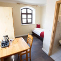 The room is warmly decorated and has everything you need to have a rest after a long eventful day. There is a shower and a TV. Please note that the listed services may not be available in all the rooms.