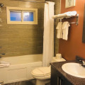 The room is warmly decorated and has everything you need to have a rest after a long eventful day. There is a shower, a TV, a bathrobe and slippers. The room equipment depends on its category.