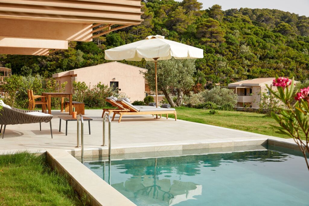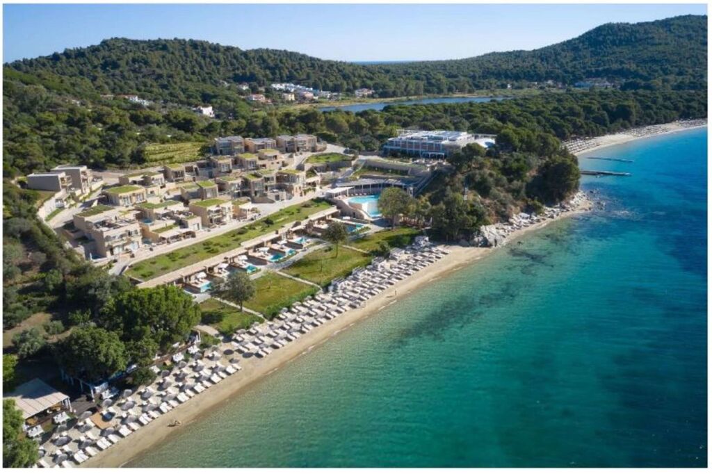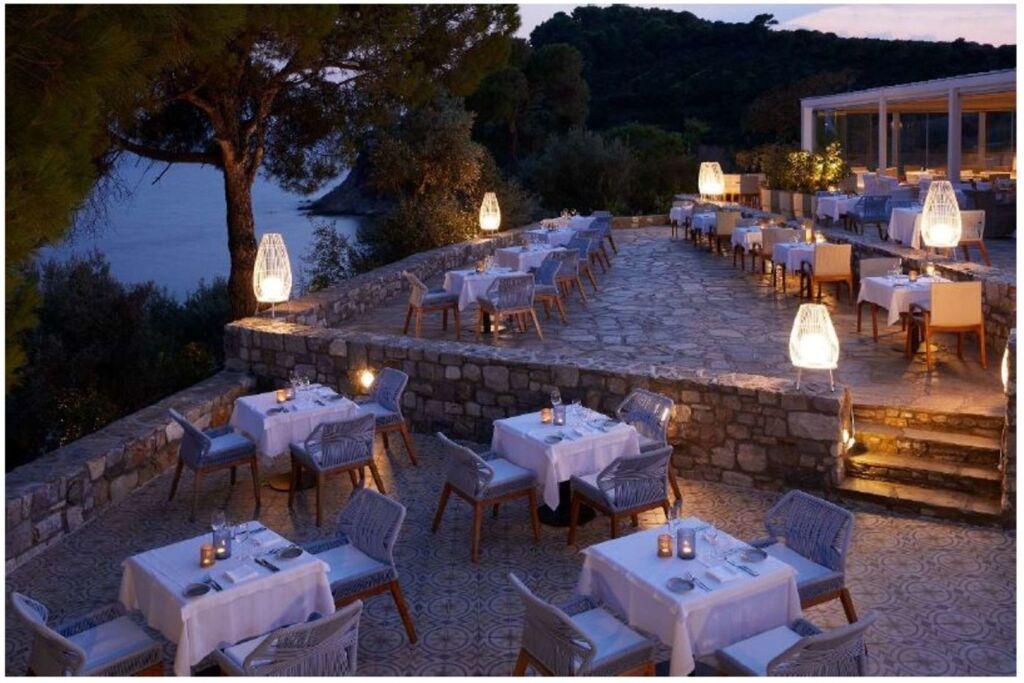 Here, you’ll be enjoying yourself all the time. Resort «ELIVI Skiathos» is located in Skiathos. This resort is located in 8 km from the city center. You can take a walk and explore the neighbourhood area of the resort — Mystique Beach, Big Banana Beach and Koukounaries Beach.