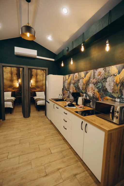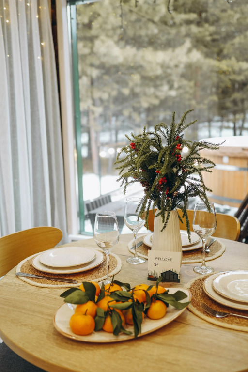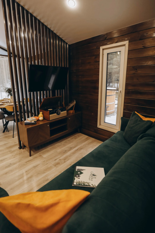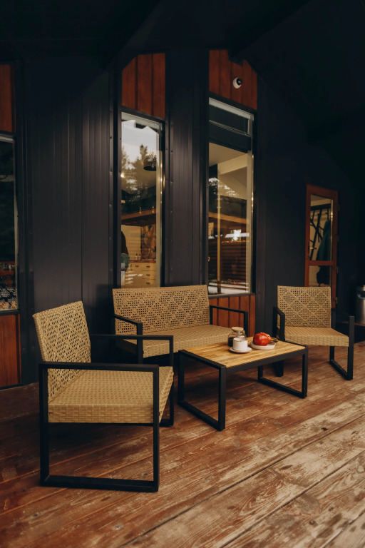 Each house can accommodate up to 6 guests. Guests have panoramic views, 2 bedrooms with hotel-class linen, a pull-out sofa, a kitchen-living room, a terrace heated by furaco. The kitchen is equipped with everything necessary for a comfortable stay: coffee maker, microwave, dishwasher, refrigerator. Each house has air conditioning, a TV with Wi-Fi and a speaker.