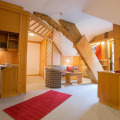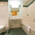 The room is warmly decorated and has everything you need to have a rest after a long eventful day. There is a TV and a bathrobe. The room equipment depends on its category.