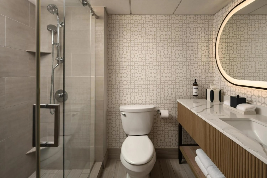 Here’s what you’ll find in the room to have a rest after a long day: a TV and a bathrobe. The room equipment depends on its category.