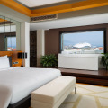 The hotel's room capacity is represented by 508 rooms of 12 different categories, from Standard with mountain views, with an area of 32 sq. m., to the Presidential Suite with a panoramic terrace of 140 sq. m. Each room includes one large king-size bed or two separate beds, upholstered furniture in the form of a sofa or sofa, a TV panel, a mirror, a minibar, a bathroom equipped with a shower or bath, and a balcony with furniture for relaxation.