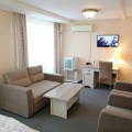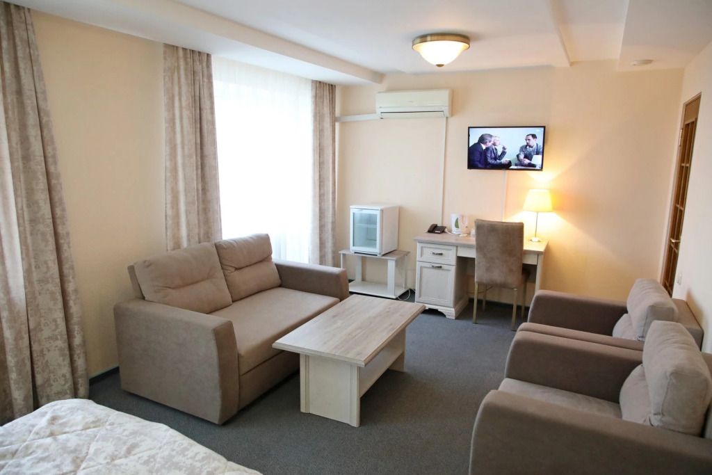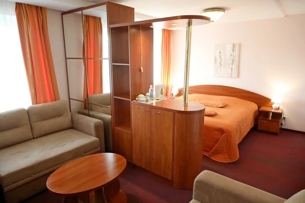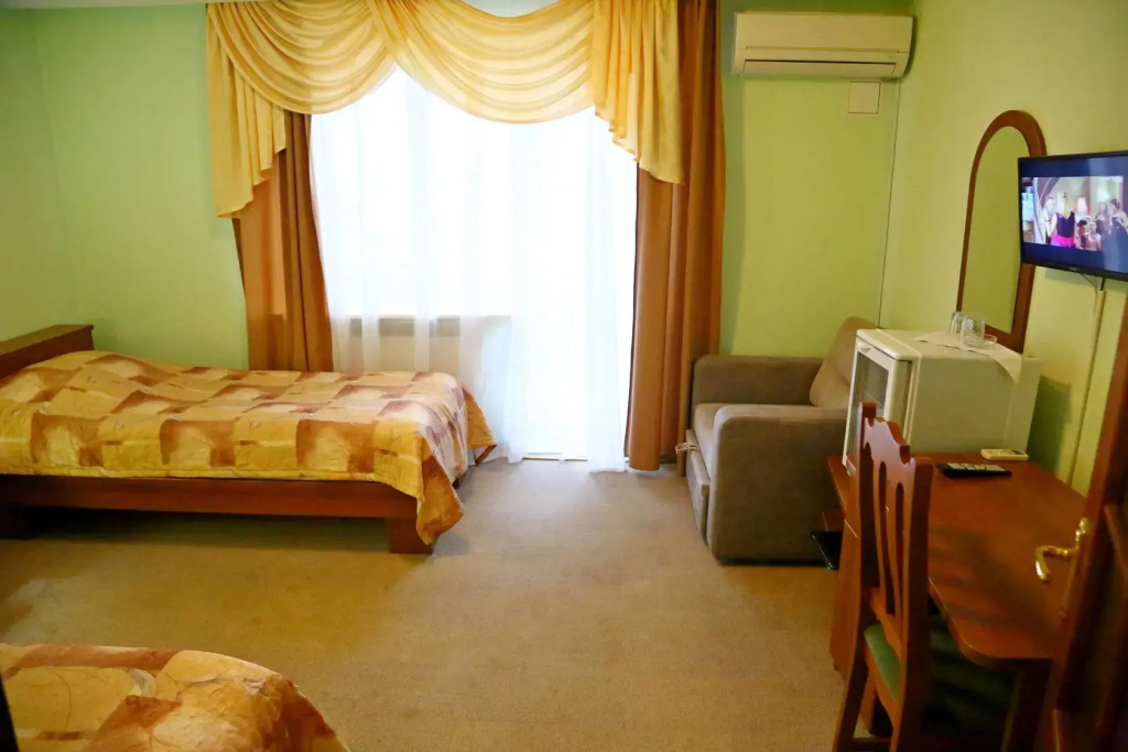 The room is warmly decorated and has everything you need to have a rest after a long eventful day. There is a TV. Please note that the listed services may not be available in all the rooms.