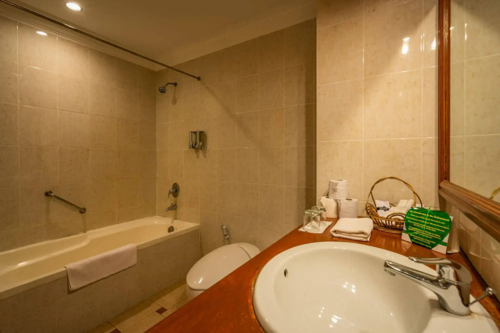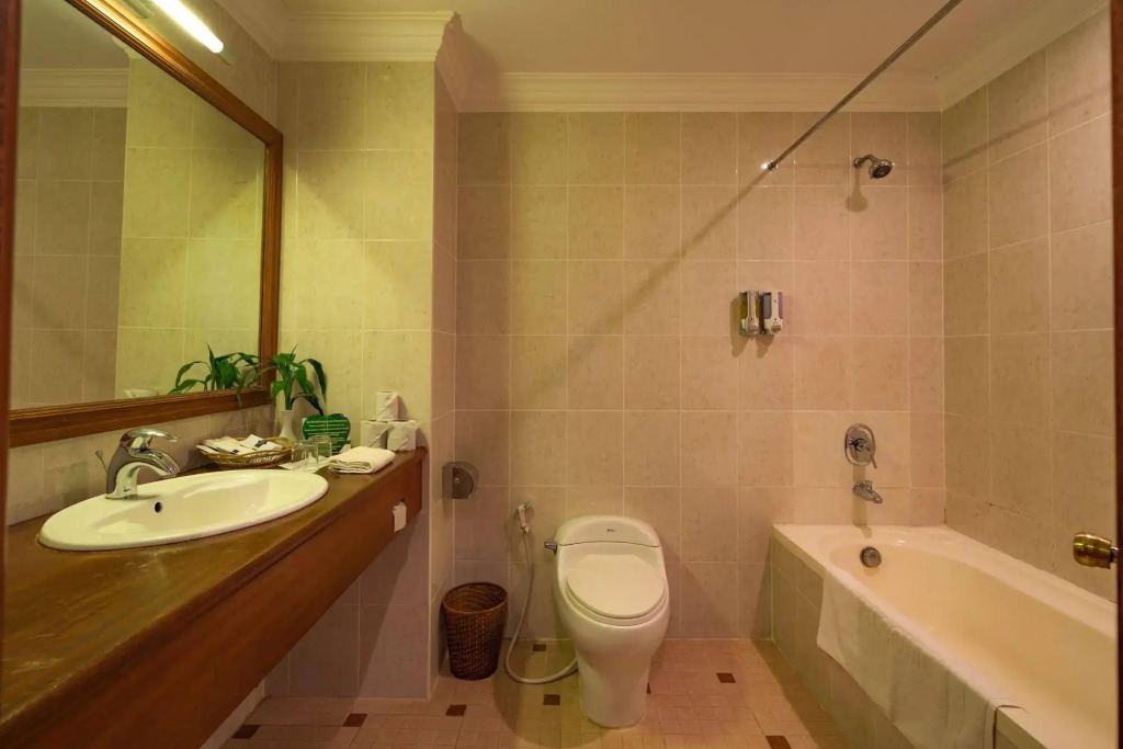 The room is warmly decorated and has everything you need to have a rest after a long eventful day. There is a shower, a TV, a mini-bar and slippers. The room equipment depends on its category.
