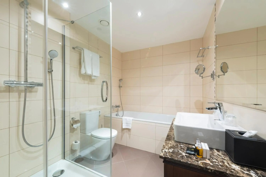 Here, you can treat yourself with water procedures as there will be a pool and an indoor pool. You can arrange a business meeting, a board meeting, and even a job interview as there is a business center. For the free movement around the city, the hotel offers a transfer for you. Accessible for guests with disabilities: the elevator helps them to go to the highest floors.