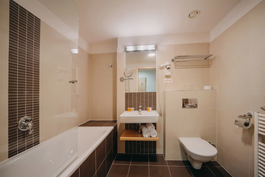 The room is warmly decorated and has everything you need to have a rest after a long eventful day. There is a TV and a mini-bar. Please note that the listed services may not be available in all the rooms.