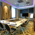 Specially for tourists who travel by car, there’s a paid parking zone. Sports fans are going to love a fitness center. You can arrange a business meeting, a board meeting, and even a job interview as there is a conference hall. There are playrooms for children at the hotel. They will be having so much fun that you might have to spend the evening with adults.