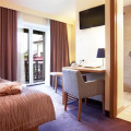 Here’s what you’ll find in the room to have a rest after a long day: a shower, a TV, a mini-bar, a bathrobe and slippers. The room equipment depends on its category.