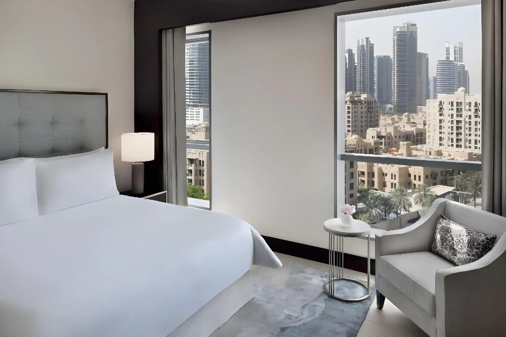 Please note that a surcharge may apply for UAE residents upon arrival. Mandatory gala dinner fees may apply at UAE hotels. Guests should contact the hotel directly for more information. For Christmas and New Year's Eve dinners, guests may be charged separately at the hotel. City tax is charged per bedroom, not per room, at AED 20.00. Fountain is undergoing renovation, no specific date of the fountain opening. The Club Lounge will be temporarily closed from 24th June until 31st of July 2025 due to necessary maintenance and improvements. During this period, the hotel offers all Club Lounge services, including breakfast, afternoon tea, and evening snacks at the main restaurant located on the 6th floor. A non-smoking room is available upon request and subject to availability. December, 31: mandatory gala dinner priced at AED 1250.00 net per adult, with 50% off for children on to be paid on spot.