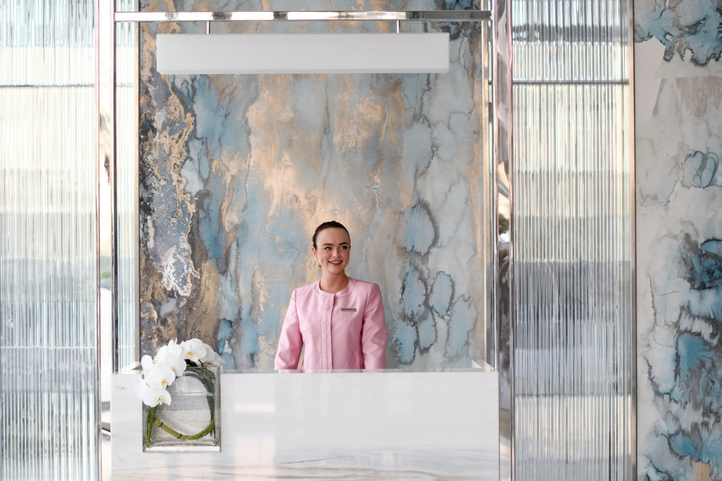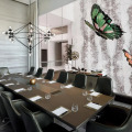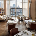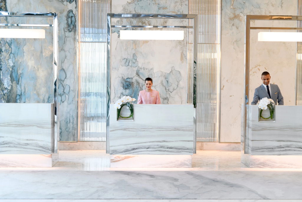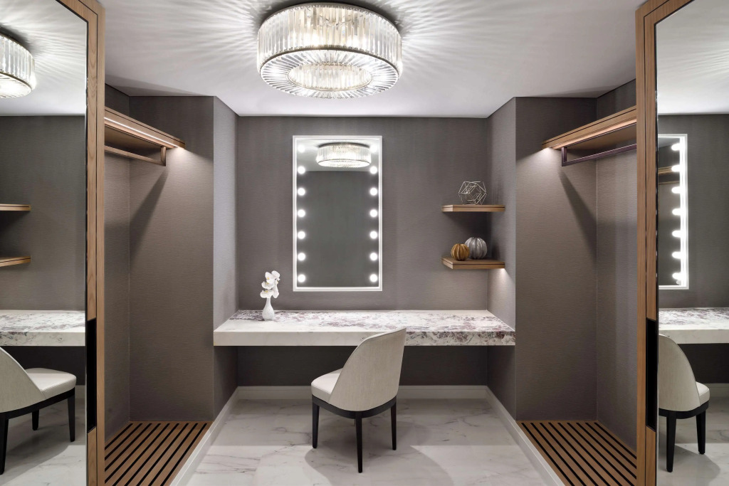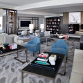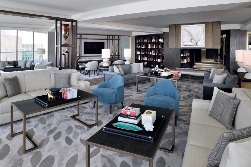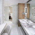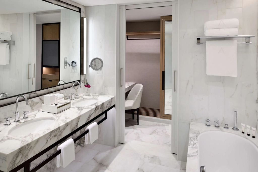 The 220 guest rooms and suites are equipped with high-speed wireless Internet, interactive TVs with Apple AirPlay devices, an entertainment interface, dressing areas with Hollywood mirrors and L-shaped sofa seating area. The marble bathrooms are fitted with dual sinks, a bathtub and a rain shower.