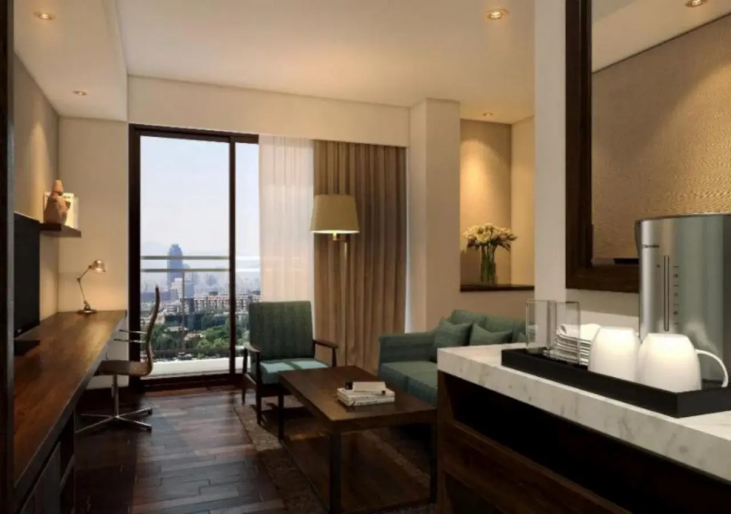 Here, you can treat yourself with water procedures as there will be a pool, an indoor pool and an outdoor pool. For participants of business meetings, there is a conference hall and meeting and presentation facilities. For the free movement around the city, the hotel offers a transfer for you. There are other services available for the guests of the hotel. For example, a laundry, dry cleaning, ironing, press, car rental, a safe-deposit box and a concierge.
